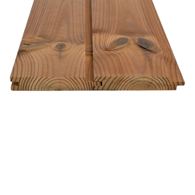 Dette beklædningsbræt er i profilen UTS10 uden spor og skal monteres lodret. Træbeklædningen er med fer og not, hvilket gør monteringen nem og giver mulighed for usynlig fæstning.