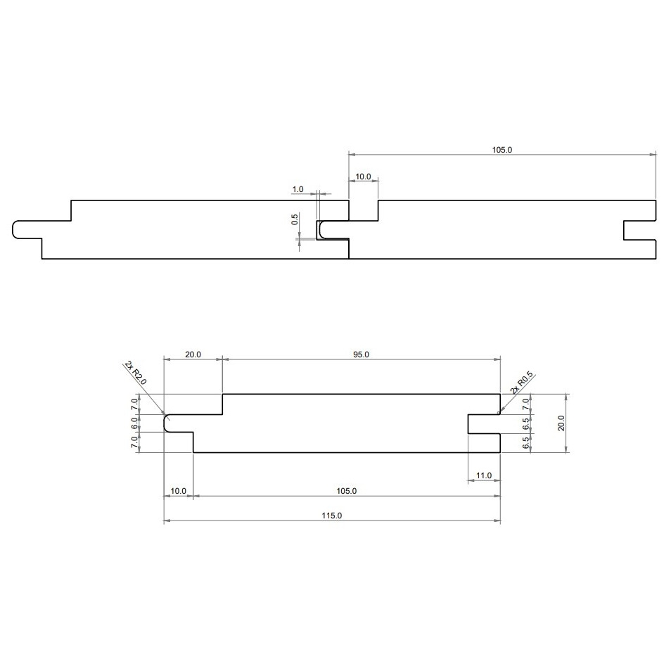 20 x 115 mm glat UTS10 fer-not u/spor beklædning Thermo Fyr